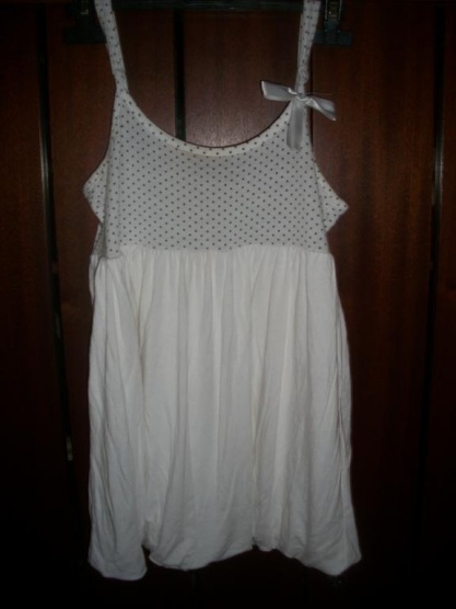 Nabízím nádherný top Amsiu, s černými puntíky přes prsa, s mašličkou na jendom ramínku.Nastavitelná ramínka.