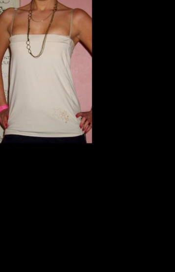 0nahoře a dole na gumu,bílý možná spíš do krémova se zlatýma částečkama a dole zlatá hvězdička,velikost XS,Amisu,bez řetízku,nenošený,vhodný na párty