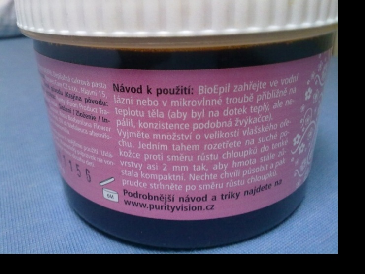 Depilační cukrová pasta od Purity vision.