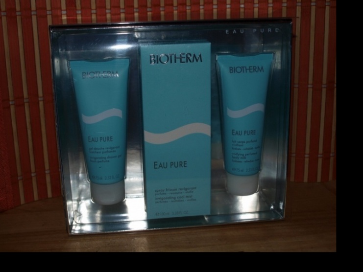 Nabízim na prodej dárkovou kazetu Biotherm.Kazeta obsahuje EAU PURE 100ml+75ml sprchový gel+75ml tělové mléko.