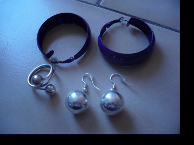 0Nabízím nášnice kuličky a širší fialové kruhy z CA - oboje bižu a stříbrný prstýnek s kuličkami. Nepoužívám, vše vzaté max. 3.