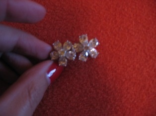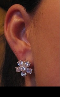 Náušnice je zacvakávací, drží v uchu, tvořená kytičkou z kamínků.