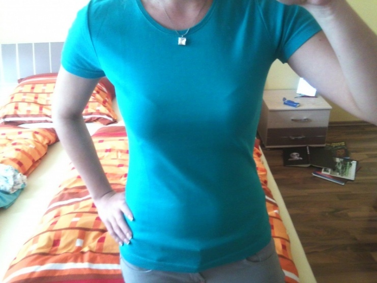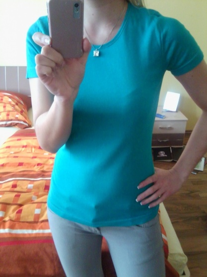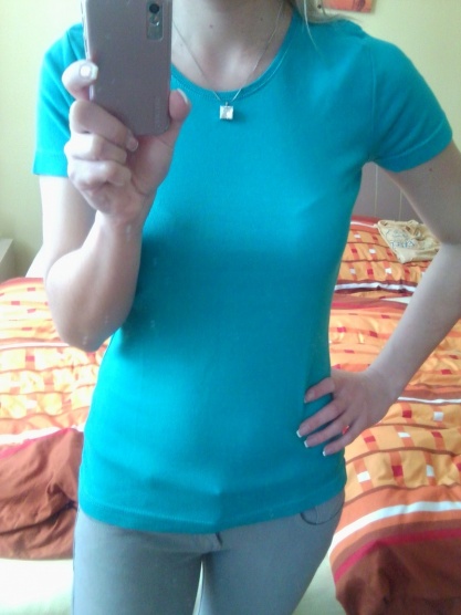 Tričko je úplně nové, měla jsem ho na sobě pouze na focení. Krásně modré. Zakoupené v C&A.