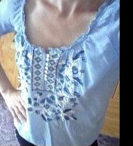 0Nabízím světle modrou bavlněnou halenku Camaieu, s vyšíváním a drobnými knoflíčky. Velikost 36, rukáv tříčtvrteční. Dole guma. Loňská kolekce. Prodám za 240,- včetně pošty.