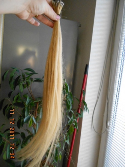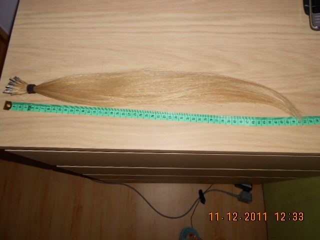 Prodám blond vlasy k prodloužení, nachystané na metodu bond plus (prameny zakončené do plíšků). Vlasy jsou kupovaní v Hairdreams, kde zpracovávají kvalitní indické vlasy. Nošené byly cca 1 měsíc. Vlasy jsou krásně pevné a lesklé. Je možno je obarvit na svůj odstín. Délka pramenů je cca 50cm a pramínků mám 48.
