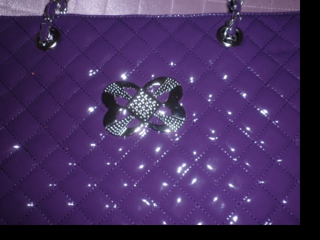 Nabízím novou, krásnou kabelku s řetízkovými uchy, barva je borůvkově fialová, viz výřez (fotka č. 2), reálné foto se mi bohužel nepodařilo