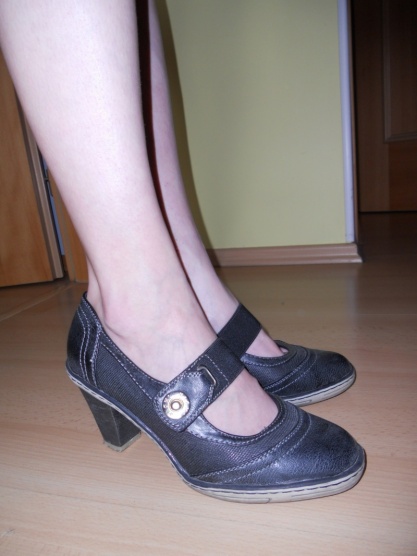 Tmavě šedé až černé (antracitové) botky ve stylu tenisky s podpatkem. Na nártu přeska, která drží nohu.