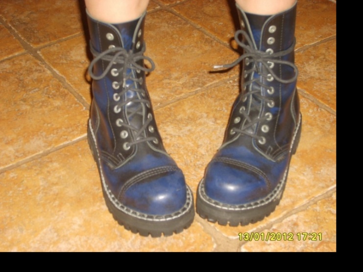 Steel 10 dírkové modrá stíraná barva: Kvalitní boty značky Steel do každého počasí. Boty jsou vyrobeny z kvalitní kůže s ocelovou špičkou. Bohužel jsem změnila styl, tak mi leží v botníku.Pořizovací cena 2090 Kč.Prodám za 1750 Kč včetně pošty.