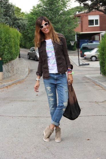Mně se to naopak nelíbí. Boyfriend jeans jsou kalhoty pánského střihu a v kombinaci s teniskami a volným tričkem mi to už připadá moc "chlapské". Hezké boty na podpatku tomu dodají tu správnou míru ženskosti a zároveň to pořád působi ležérně.