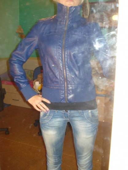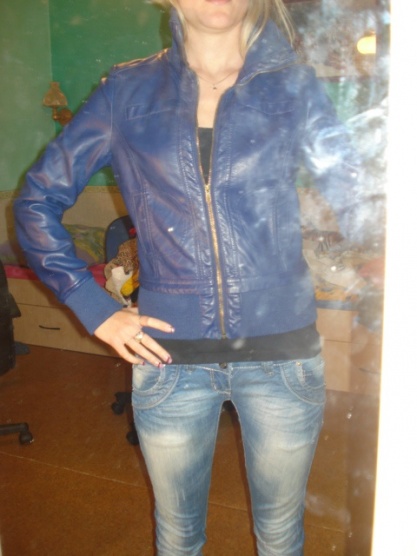 Prodám nošenou, ale stále hezkou koženkovou bundičku modré barvy. Je bez vad a poškození.Velikost je psaná L, ale jelikož nosím Sko a je mi hezky, tak odhaduji, že to Lko být nemůže.