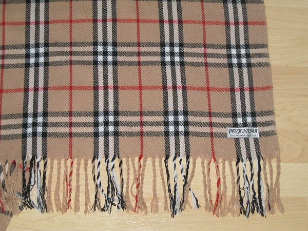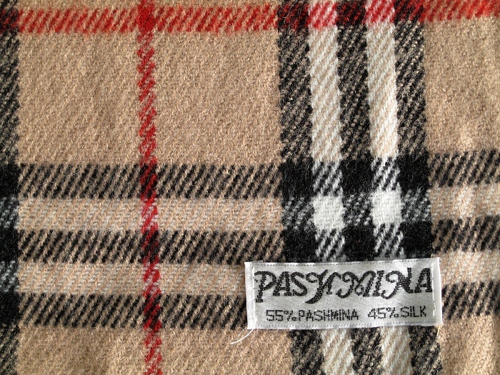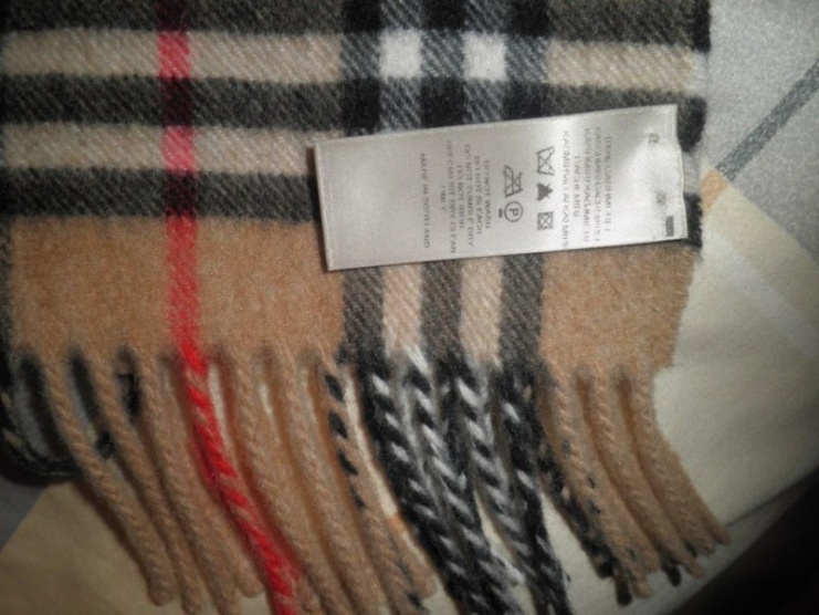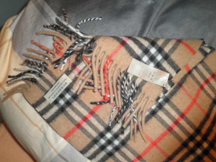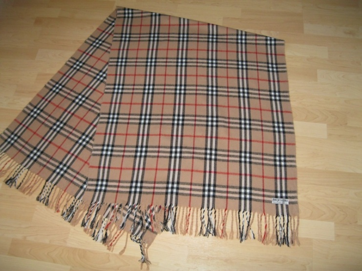 Tak taky hodím do placu jeden šál.Je to úlovek ze sekáče.Je na něm i cedulka viz foto.Přesto si nejsem jistá jestli to není Burberry a na šále měli být třeba cedulky dvě.Měla jsem totiž šál Dior a tam ty dvě cedulky byly- jedna se značkou a pod ní materiál.Bohužel mi je v čistírně ukradli.Tady je jen cedulka s materiálem.Dívala jsem se na Ebay a našla jsem podobné fotky.Burberry vintage,je to hodně podobné.Stejná hustota materiálu, kostky.Tak nevím. Nejdříve vložím fotky moje.velikost 75x necelých 180 cm.