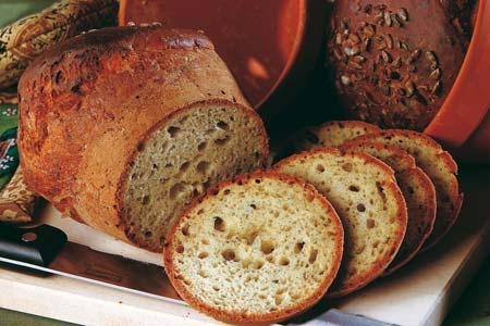 Vypracujte těsto, přikryjte je čistou utěrkou a nechte kynout na teplém místě asi 20 minut. Potom ho rozdělte na 2 poloviny, které dejte do vymazaných květináčů a nechte ještě 15 minut kynout. Vrchy bochníků potřete vodou, posypejte slunečnicovými semínky a dejte péct do trouby vyhřáté na 220 °C. Upečené chleby nechte vychladnout v květináčích a až pak je vyklopte.