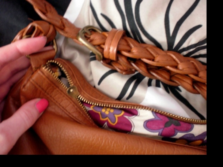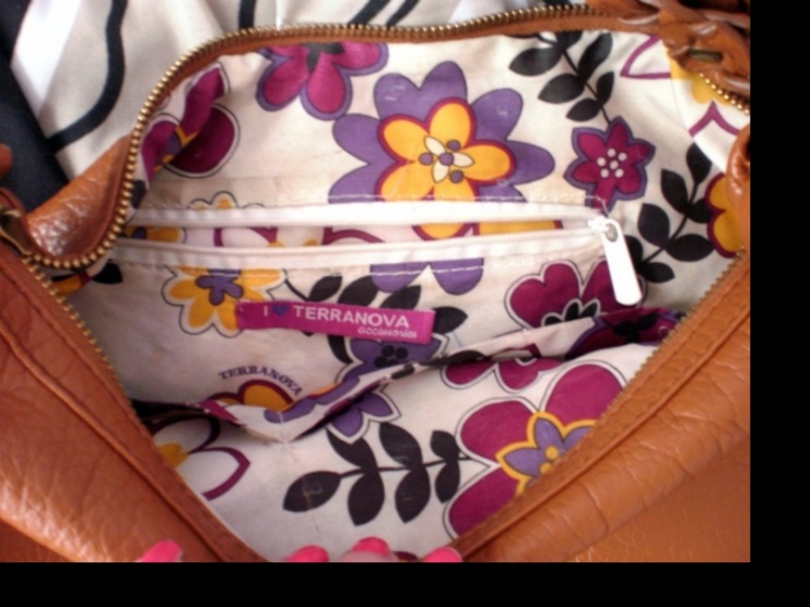 Kabelka je moc pěkná, uvnitř je květovaná podšívka plus kapsička na zip (viz. foto).