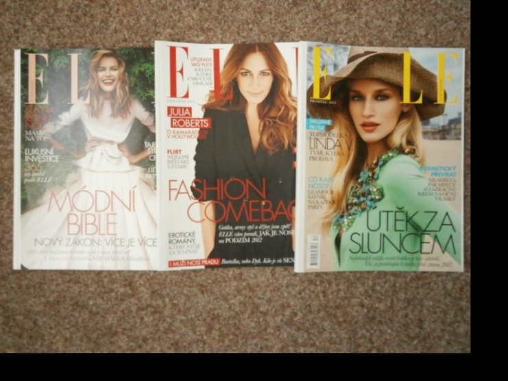 Ahoj, prodám časopisy ELLE roku 2012: říjen, listopad a prosinec. Jsou ve výborném stavu. Dělala jsem čistku a bylo mi líto je vyhodit:/ Jedna za 50 Kč nebo všechny dohromady za 130 Kč (sleva 20 Kč) + poštovné nebo možné osobní předání