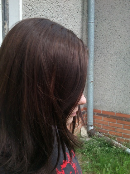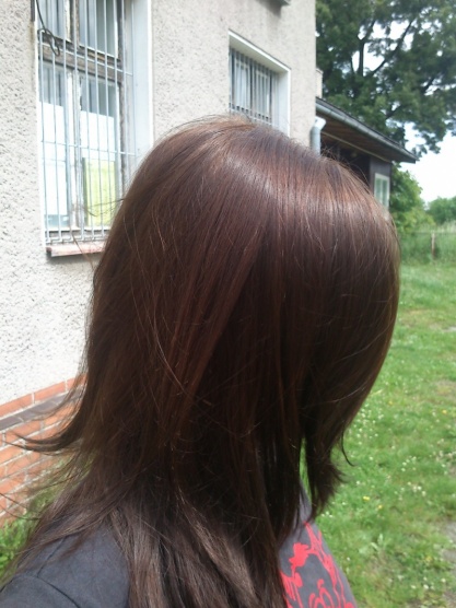 Přidávám fotky, barva jako taková se mi líbí, ale štve mě barva odrostů, své vlasy mám špinavé blond, předtím jsem barvila jak už jsem psala color maskem 500 (středně hnědý), na délkách je krásná hnědá (i když tedy ne mléčně čokoládová, to je ale tmavým podkladem) jenže na odrostech jakási světle hnědá, na slunci i možná do zrzava, a jak se bude vymývat bude to ještě horší...Chtěla jsem vlasy začít šetřit a používat přeliv, tak asi příště zvolím tmavší