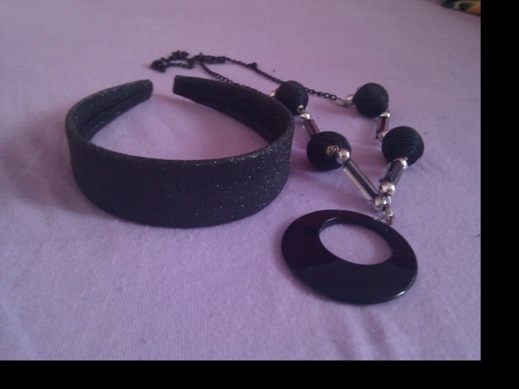 Čelenka je zakoupená ve značkové bižu, je se třpytkami a trochu širší. Korále jsem měla u nějakého trička, ale nenosím je. Cena 120 + pošta