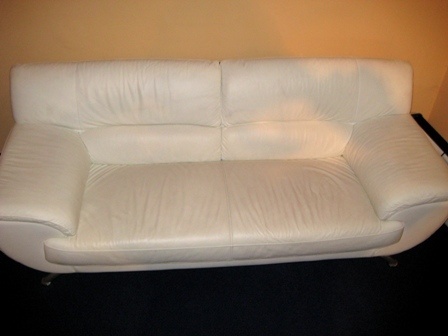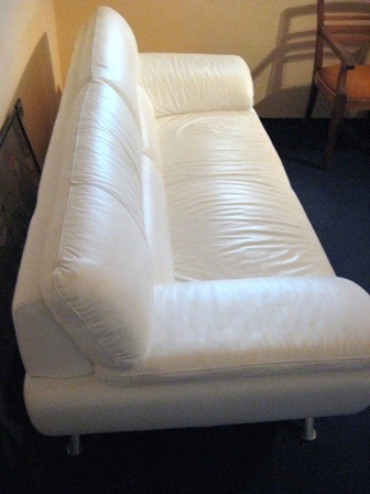 Bílá celokožená trojsedačka dovezená z Londýna. Původně kupovaná jako souprava s křeslem a dvousedačkou. Máme ale byt do kterého se nám třetí nejvetší díl nevleze