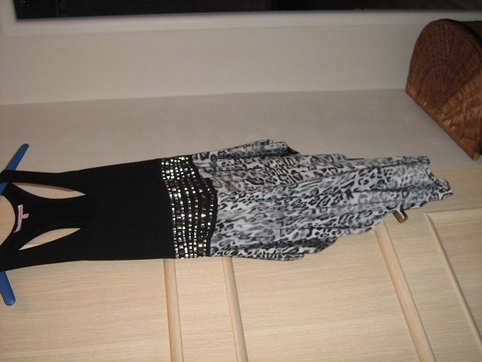 Ahoj, nabízím černou s kamínky na prsou a tygrovanou tuniku. Nenošené, dostala jsem darem, ale není to můj styl. Šířka přes prsa 35,5 cm, délka 93 cm obě. Cena za jednu