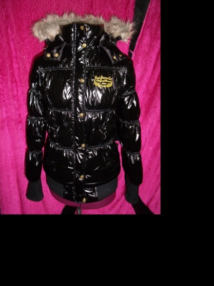 Bunda je z lesklého materiálu. velikost S ale bude sedět i M. Jsem vysoká 178cm a je mi na boky.