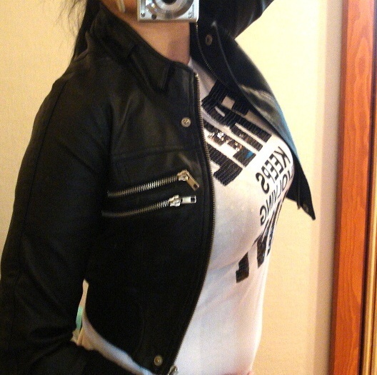 03/4 rukávy,koženková,já bohužel nedopnu přes prsa,bez vad.