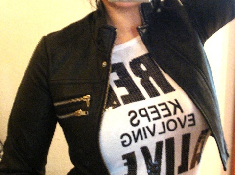 3/4 rukávy,koženková,já bohužel nedopnu přes prsa,bez vad.
