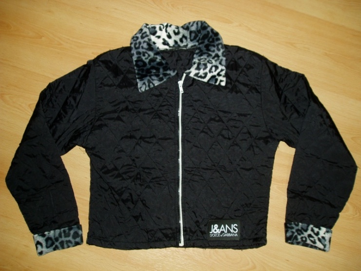 0Krátká prošívaná bundička s plyšovým límečkem s leopardím vzorem. Je to prehistorický kousek ze skříně mé tety.