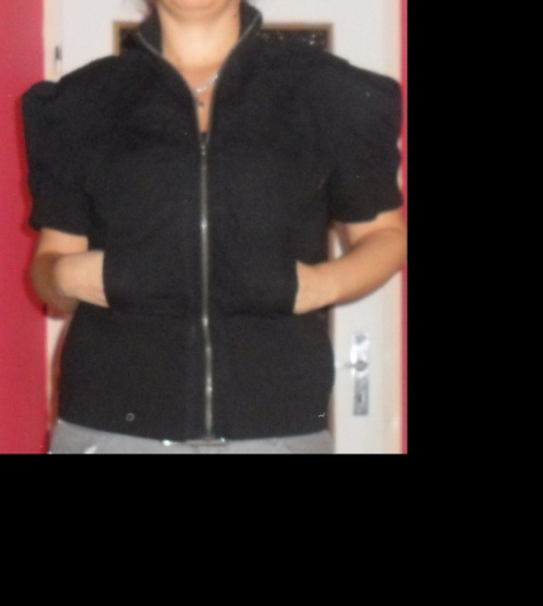 0Predám krásnu černú bundičku s krátkym mírne řasenými rukávmi .Rozmery
