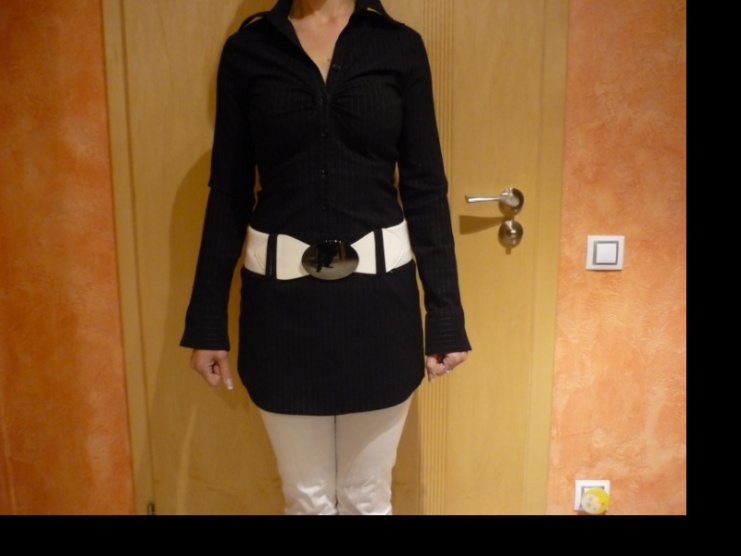 černá košile s jemným bílým proužkem s elastického,pevného, kvalitního materiálu.Délka 80cm, rukáv s manžetou, která se dá ohrnout 63 cm.Prodávám bez pásku, ale pasuje tam jakýkoliv pásek.Možné nosit k džínám, ale i do společnosti.Velmi málo nošená, skoro nová.Velikost je psaná L ale odpovídá S.Cena 350 vč. pošty.