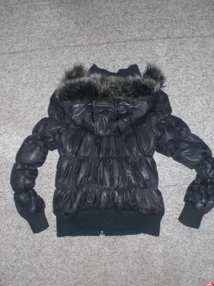 Šedočerná bunda ''s gumičkami'' a proto řaseným vzhledem.Je pohodlná, nošená. Kupovaná v Polsku.O rozměry si napište SZ