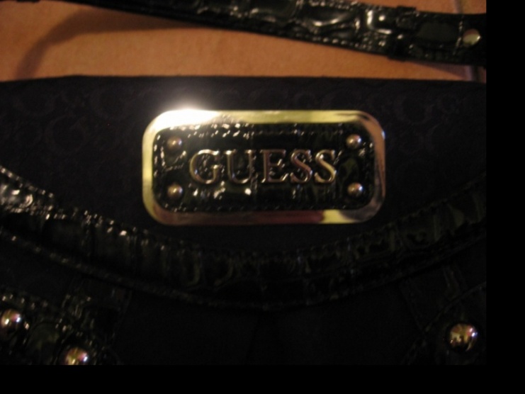 Uvnitř klasická Guess placka, jedna zapínací kapsa, a kapsičky na drobnosti.