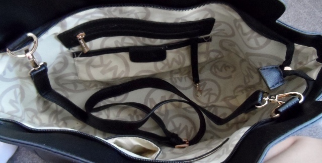 ve vnitř kapsa na zip, pod ní kapsa, na druhé straně kapsa na telefon a např. na klíče
