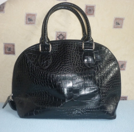 Kabelka je v imitaci krokodýlí kůže. Zapínání na zip se dvěma jezdci, vevnitř další kapsička na zip, kapsička na mobil a kapsička na doklady.