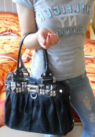 Kabelka je krásně prostorná, vleze se do ní plno věcí, nosila jsem jí i do školy na skripta, opravdu velká. Kovový úchyt na zipu po prvním dešti zrůžověl.