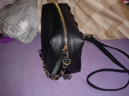 Dlouhý popruh zakončený zlatými řetízky. Možno nosit buď jen přes rameno nebo crossbody.