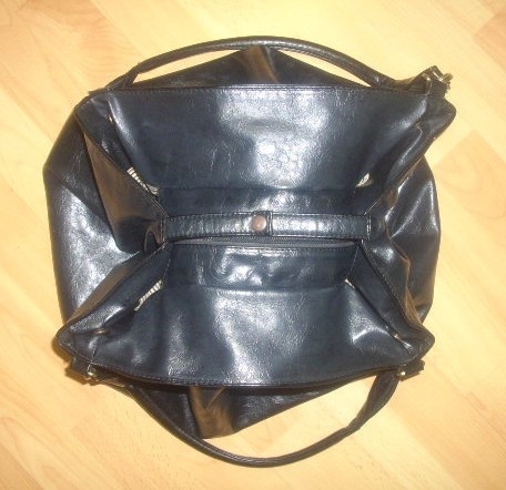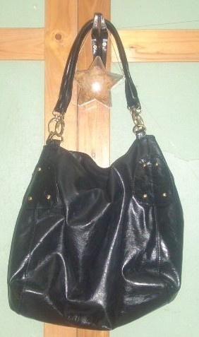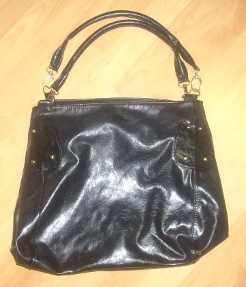 Černá kabelka, se zlatými detaily, nošená pouze dvakrát. Černější, než na první fotce. Mám mnoho kabelek a neunosím. Má jednu velkou kapsu, ve které je jedna menší na mobilní telefon, dále 2 přihrádky na zip, a jednu bez zipu. Uši jsou na karabinky, dají se odepnout. Kapsa je na zip, přes který se zapnou ještě dva patentky, které kabelku stáhnou a nikdo a nic se do ní nedostane. Je to bezpečnostní taška