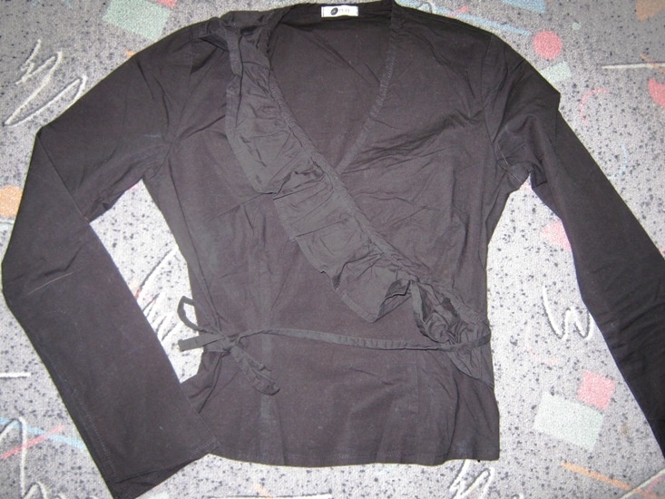 Nabízím černou košili s volánkem zn. Orsay. Už ji mám delší dobu, ale leží mi jen ve sříni, tak třeba někomu poslouží. Rukávy mají rozparek. Bohužel má košile takový střih, že do pasu je kratší. Cena: 100,- + pošta