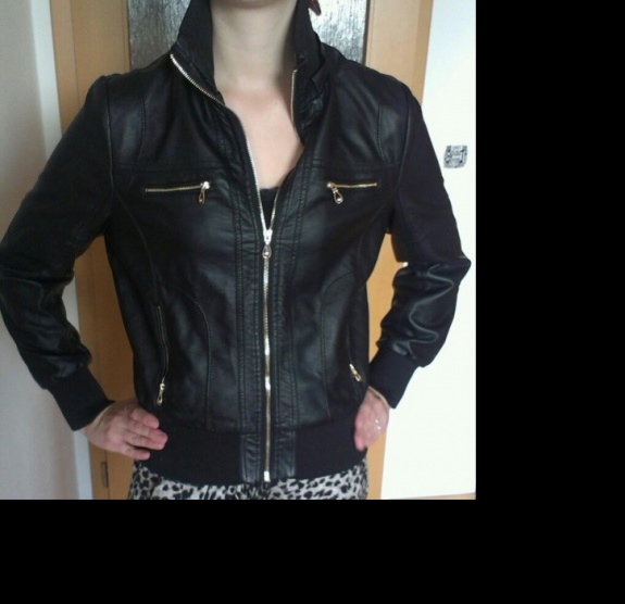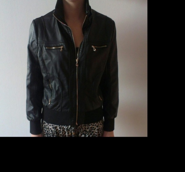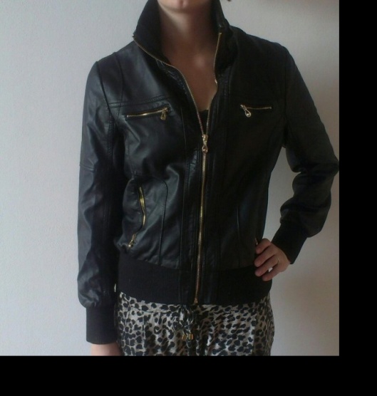 Nová, nenošená bunda - koženka, ještě s visačkou. Černá se zlatými aplikacemi a odepínatelnou kapucí. PC 1.200Kč. Unáhlená koupě, bunda mi moc nesedí