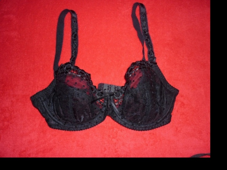 Prodám nošenou, nevyztuženou černou krajkovou podprsenku s puntíky,