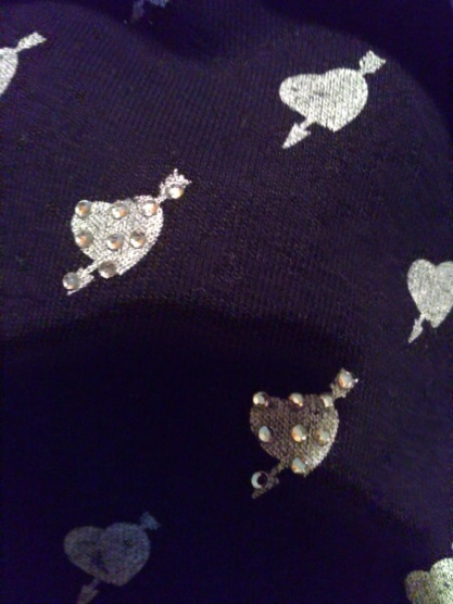 Je celá černá a posrdíčkovaná (nalevo nahoře jsou dvě srdíčka pod sebou ozdobena kamínky