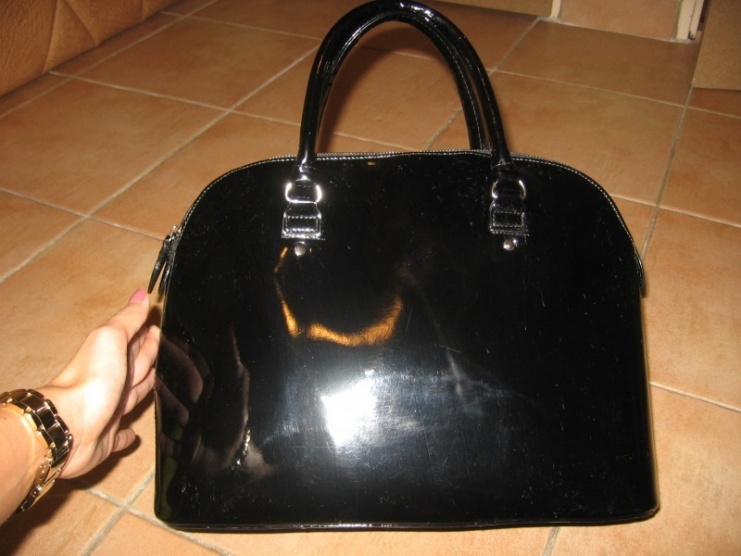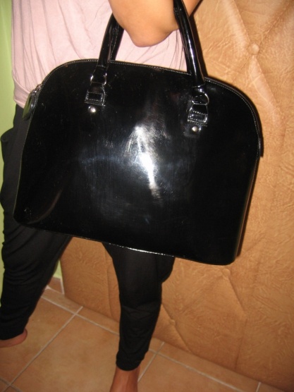 Prodám minimálně nošenou černou lesklou kabelku z Oodji, ve tvaru populární Almičky.