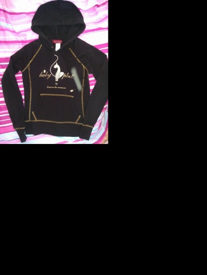 Mikina je nošená, ale vzhledem ke kvalitě to není skoro poznat.Spodní lem je trochu žmolkovatý,ale hlavně zevnitř. Kočka je celá z kamínků.Šmouhu na fotce udělal foťák...Cena 250 Kč s poštou