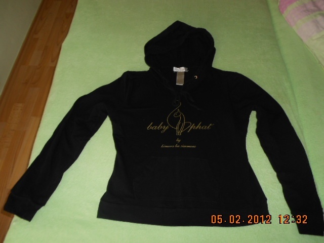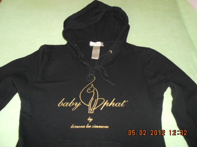 Prodám nošenou mikinu Baby Phat, černá barva se zlatým nápisem. Moc příjemný a pružný materiál. Mikina má kapuci. Nošena byla jen párkrát, takže je zachovalá. Vyšší pořízovací cena