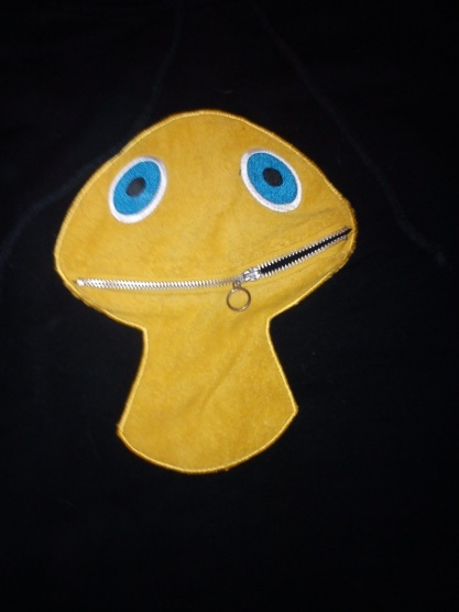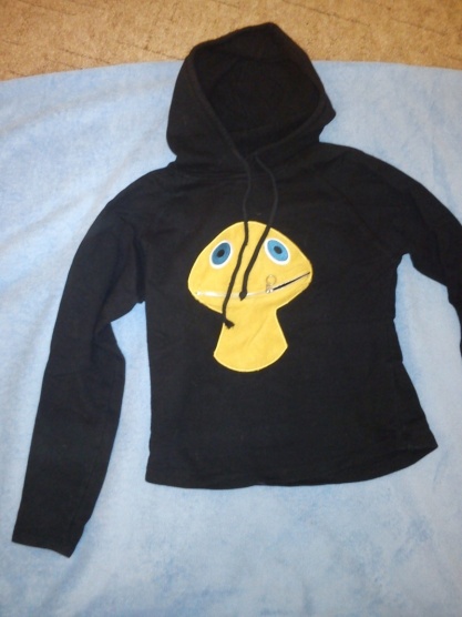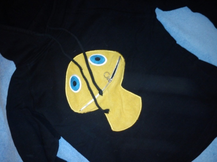 0Krásná černá mikina se žlutou postavičkou se zipem místo pusy uvnitř malá kapsička - značka Missimo - párkrát nošená ale hodně zachovalá!