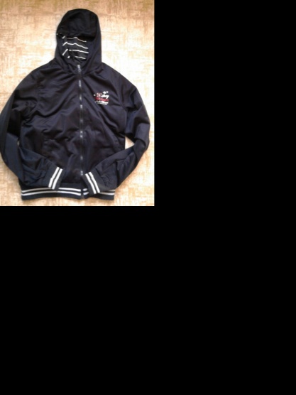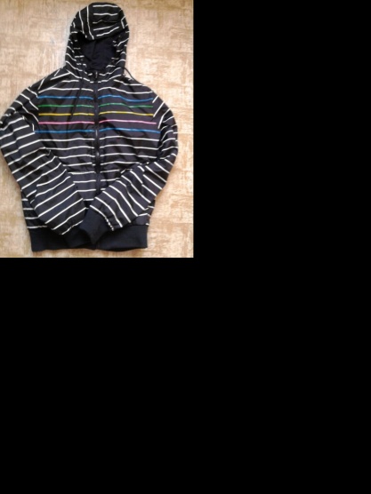 Nabízím krásnou oboustranou bundu s kapucí. Z jedné strany černá a nahoře barevné pruhy. Má kapsy na patentky. Nepromokne a hřeje. Z druhé strany látka. Na koncích pružné lemy. Cena 350 + poštovné