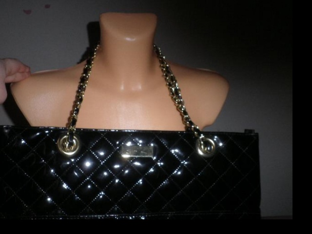 Krásná černá lakovaná kabelka s řetízkovým uchem, zapínání na patent, velmi prostorná, nevyužiju, protože ji mám ještě v jiných barvách, které unosím více, tak posílám dále.