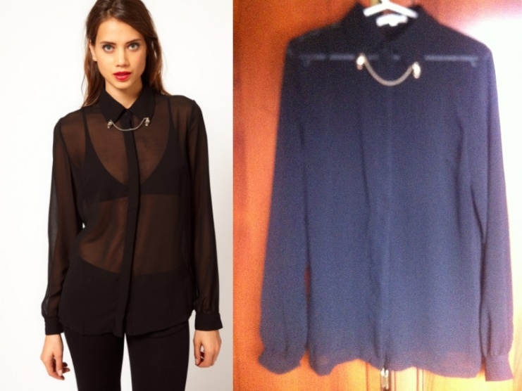 Krásná černá, elegantní, průhledná košile se zlatým detailem v podobě řetízku a dvou lebek. Velikost 36, úplně nová. Nevyměňuji! Původní cena 1500 kč