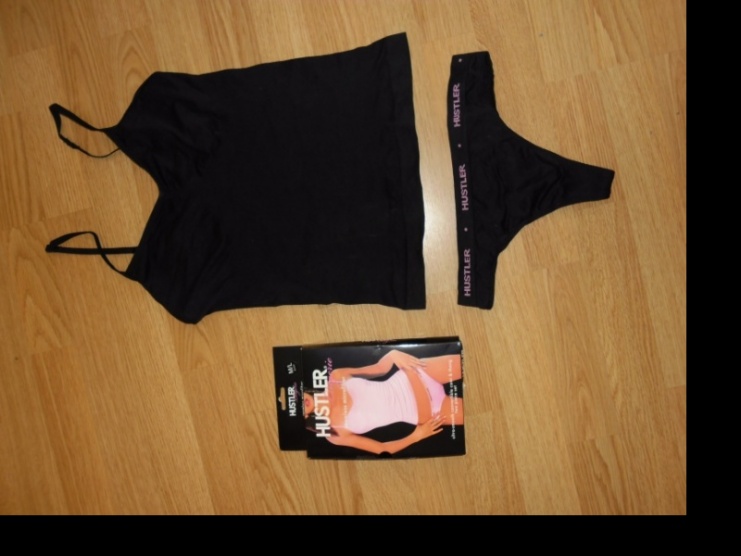 Dámská sexy souprava značky Hustler obsahuje kalhotky tanga s růžovými logy Hustler a košilku s posuvnými ramínky, která je na zadním díle opatřena perforací (opět nápis Hustler). Prodyšný elastický materiál, baleno v originální krabičce. Velikost je uvedena M/L, ale padne i S.Složení: 92% polyamid, 8% elastan.