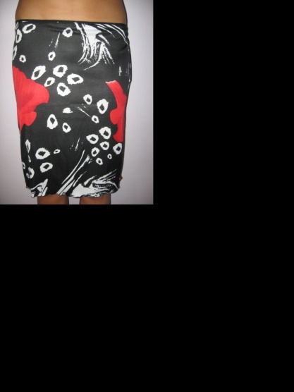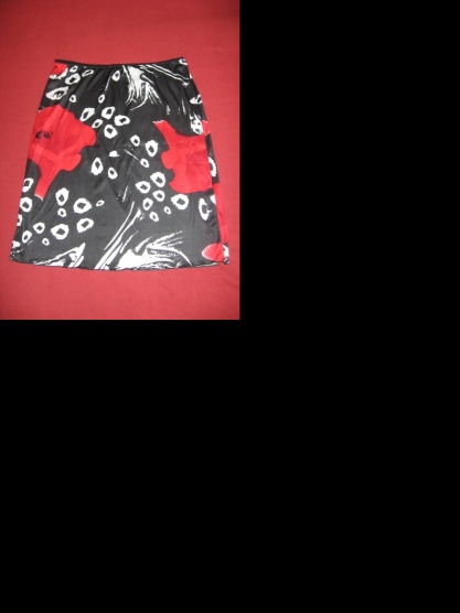 Prodám nenošenou lehkou černou sukýnku s květy vlčích máků a bílými kolečky.