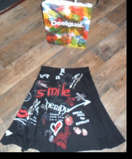 Predám černú suknu s extravagantným potiskem značky desigual velkosť je psaná L ale sukne je velmi pružna a elastická takže sa prisposobi všetkym velkostiam.Kedže to bol dárek nemám vysačky,je nová ..Navrhujem cenu 1000,- včetne pošty