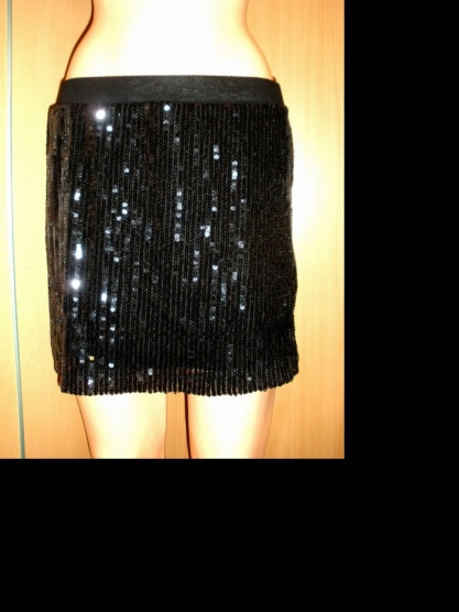 0Prodám novou společenskou minisukni vel.40,pas obvod 80 cm,boky obvod až 105 cm,délka sukně 38 cm,elastická látka posetá lesklými flitry-přizpůsobí se postavě,atraktivní